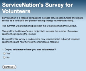 Be The Change, Inc. — the folks behind the Service Nation movement to grow funding and support for service opportunities — have launched a survey to ask you how you find volunteer opportunities.